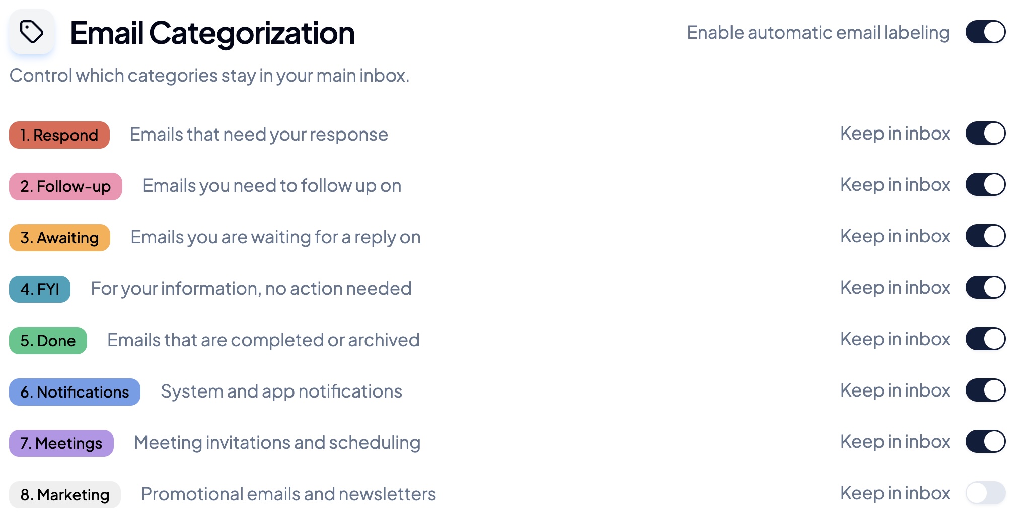 No rules to write, no folders to set up. Messages land in clear categories from the moment you connect.
